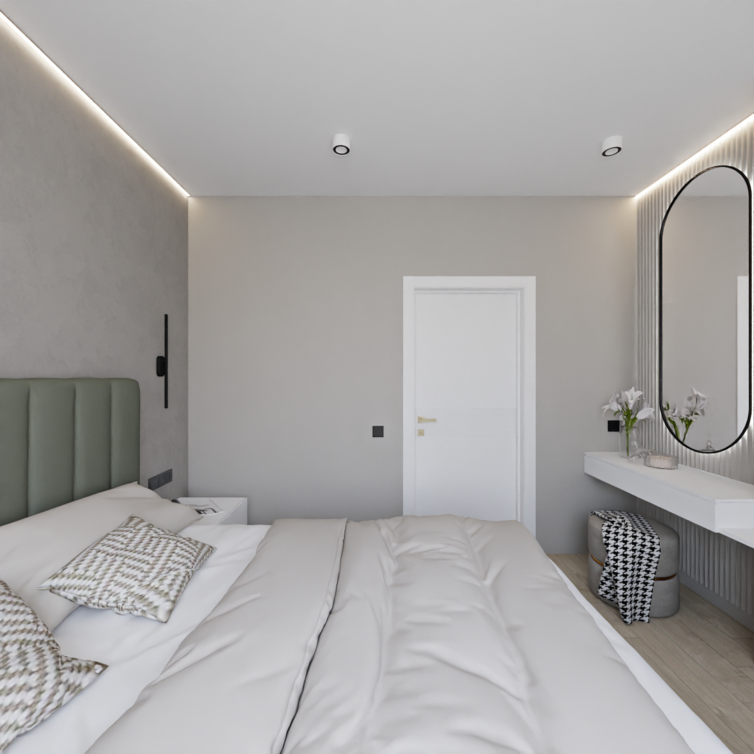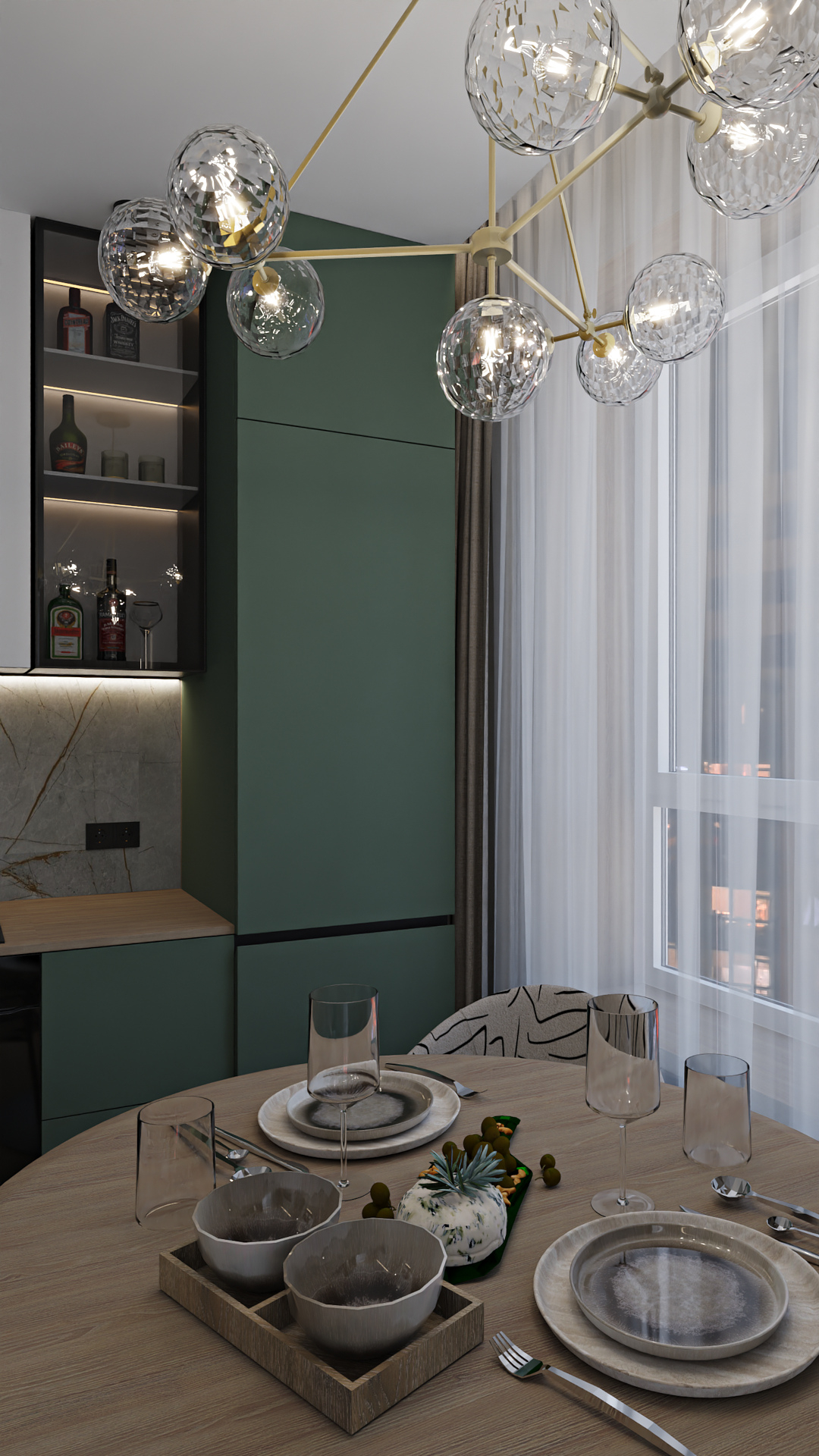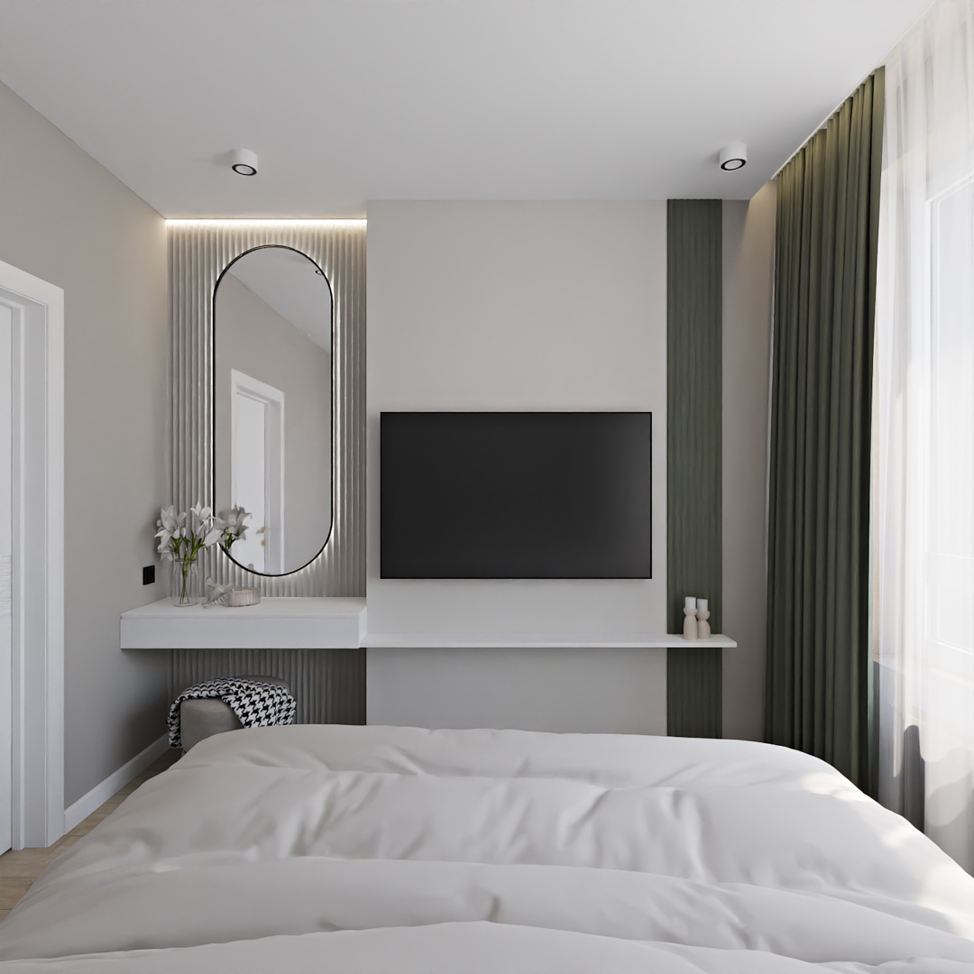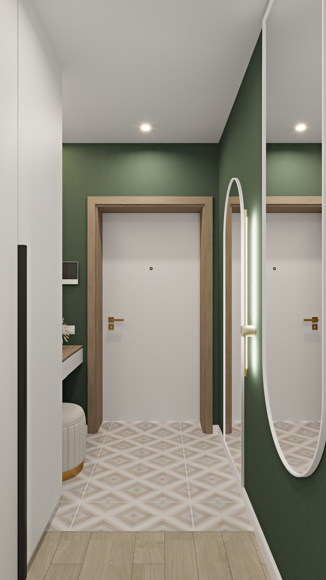 Баланс между очень ярким зеленым с добавлением золотой фурнитуры и спокойной нейтральной детской