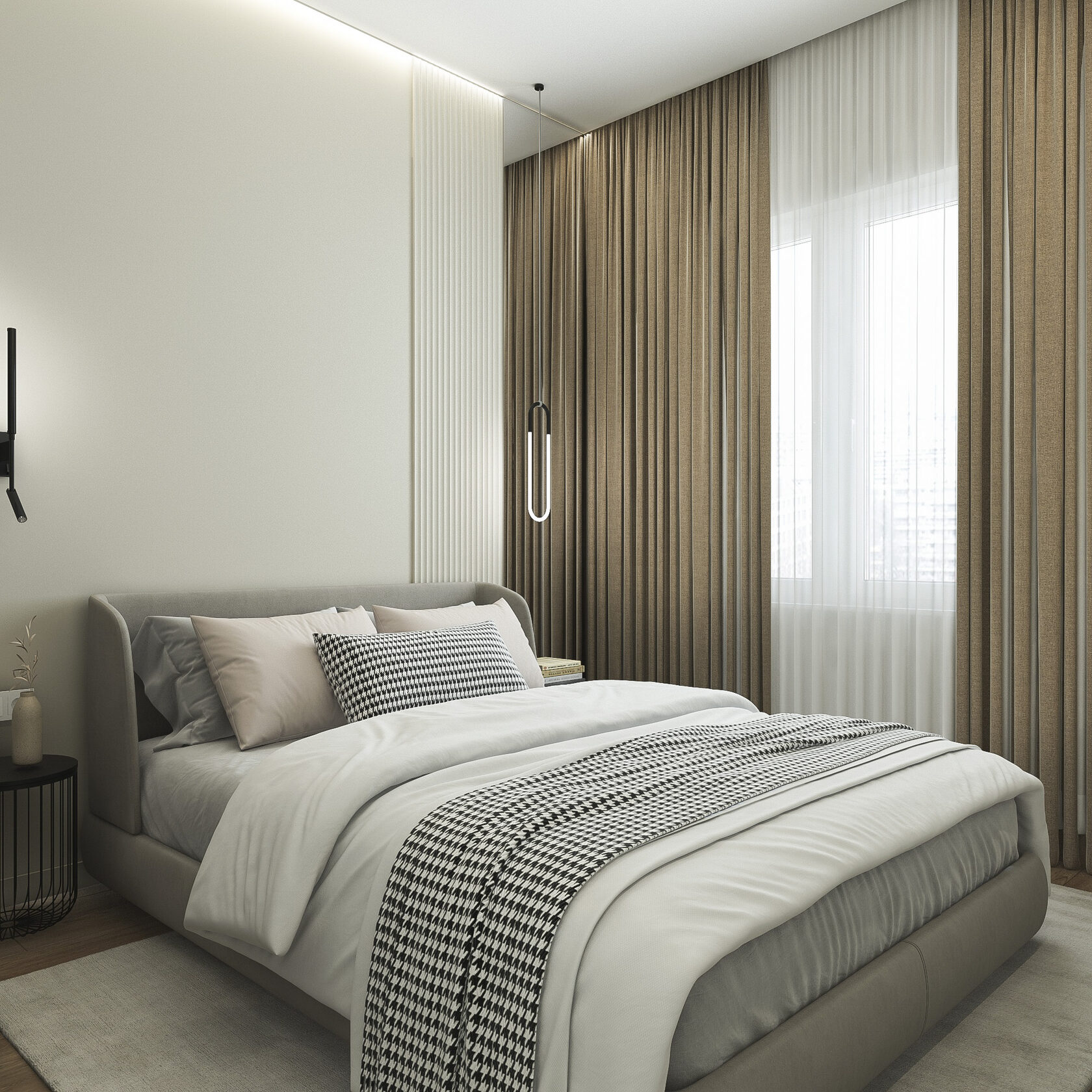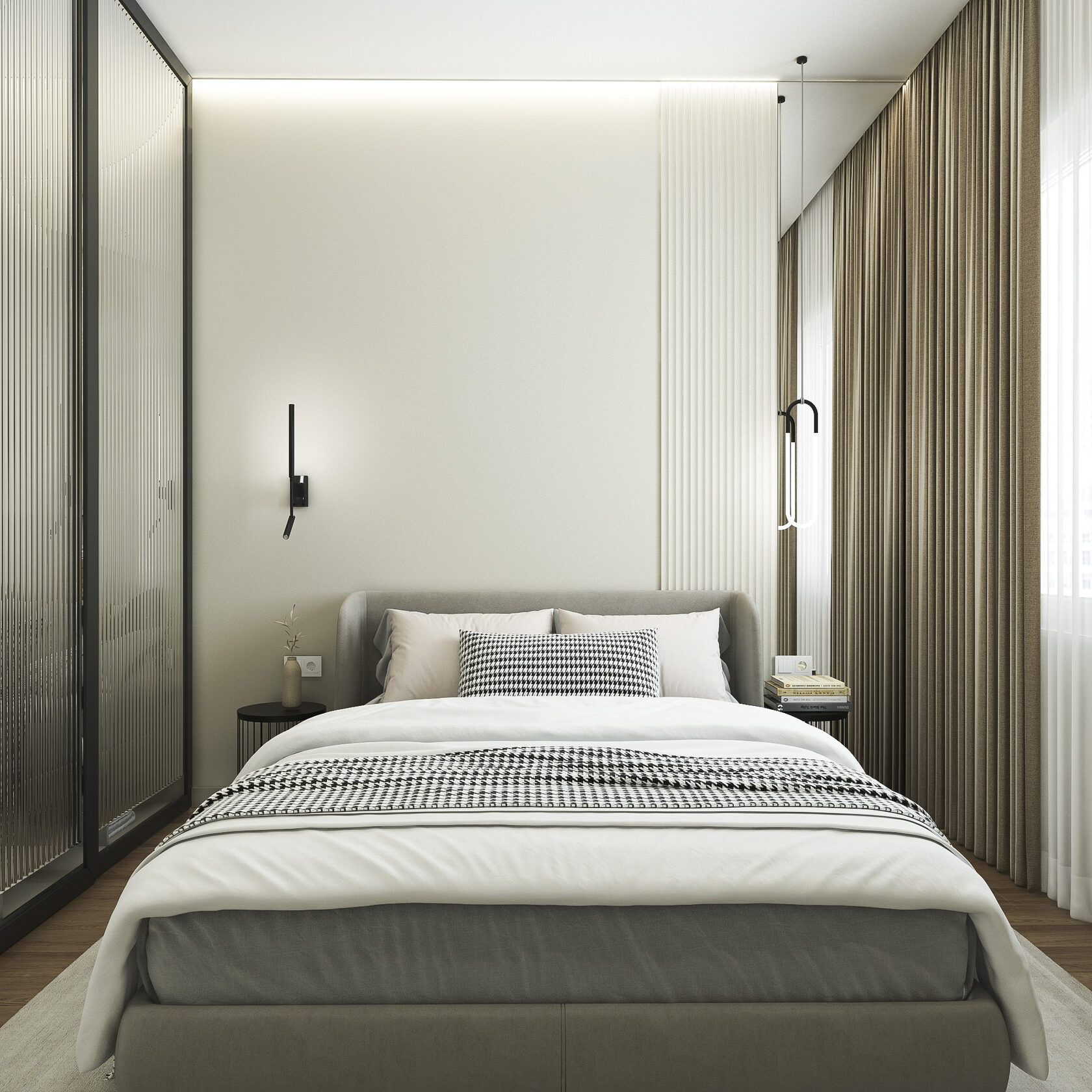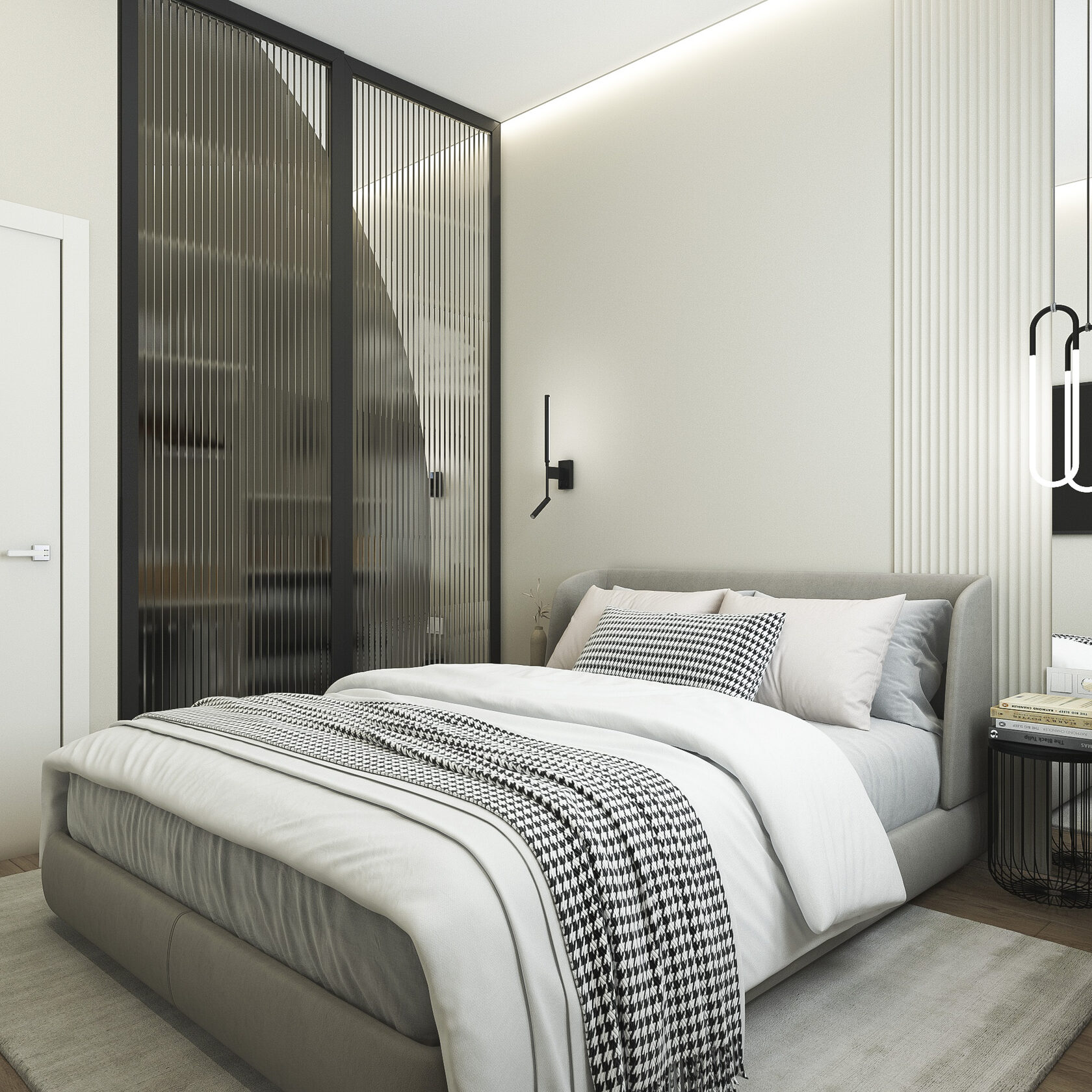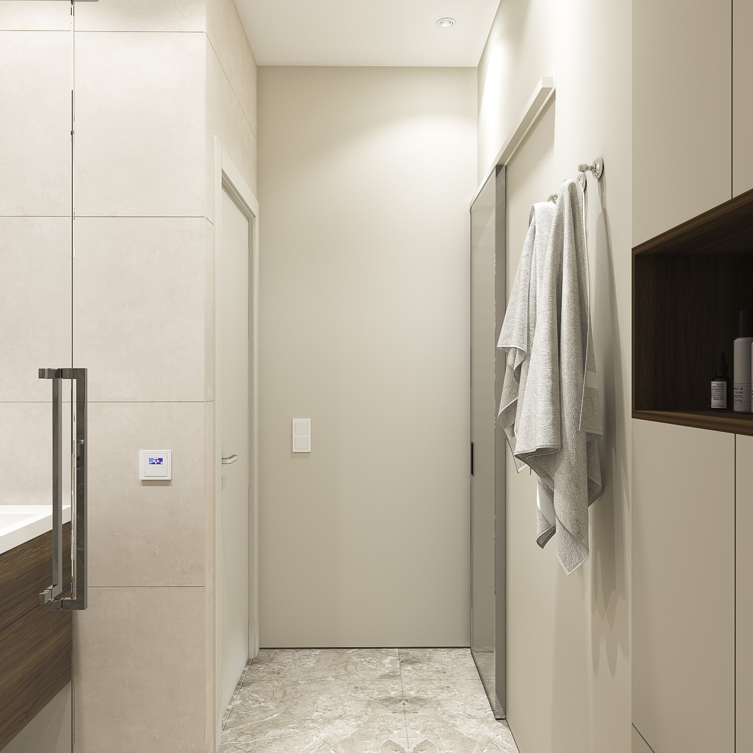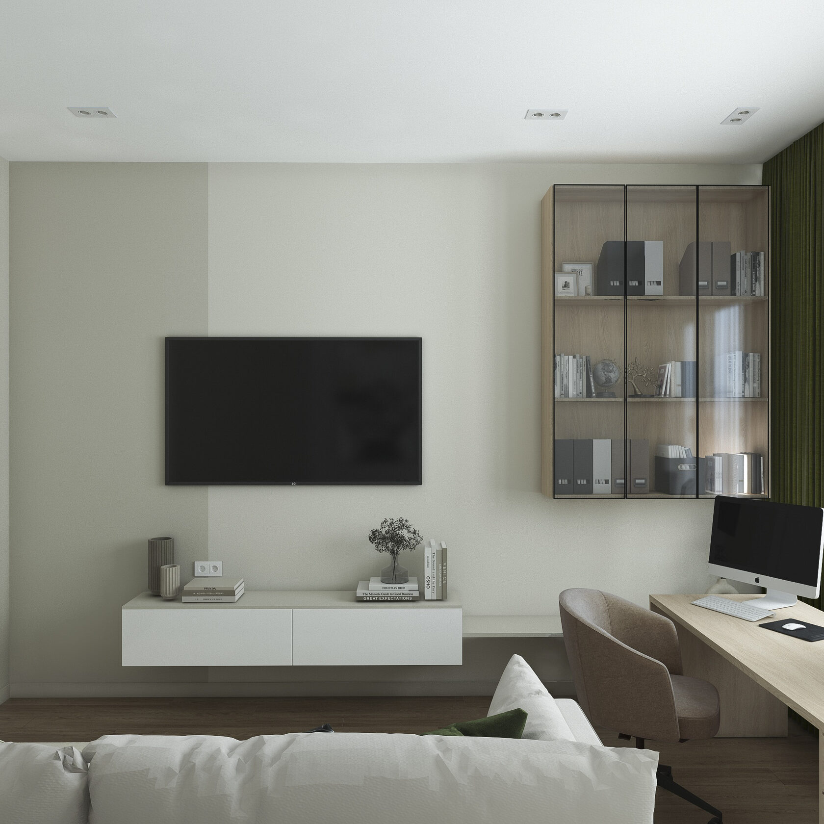Выделенный кабинет, зона постирочной и зона хранения, светлая спальня